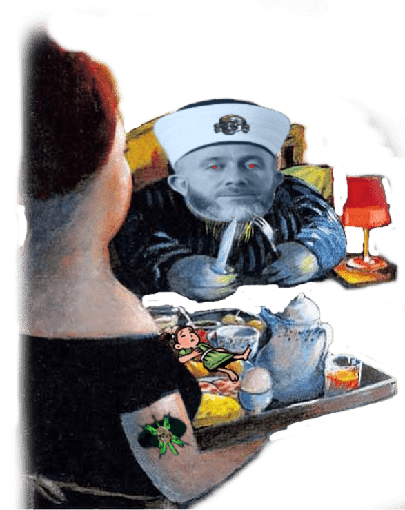 וָלֹא, אֲשַׁסֵּף אֶת גְּרוֹנוֹ וְאֶת בְּשָׂרוֹ נֹאכַל עִם תַּפּוּחֵי אֲדָמָה וּבָצָל.